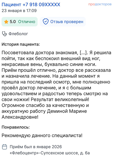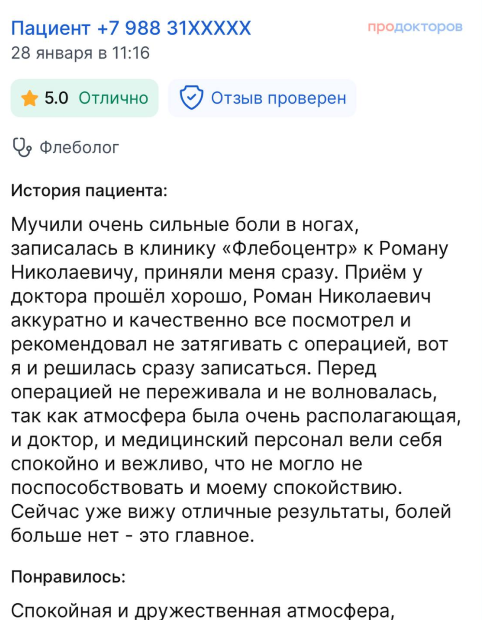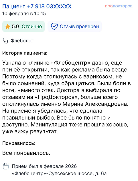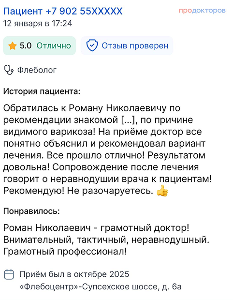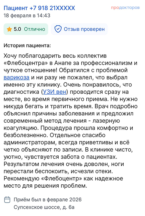 Вы получаете развёрнутые ответы на все вопросы от флеболога (сердечно-сосудистого хирурга)
