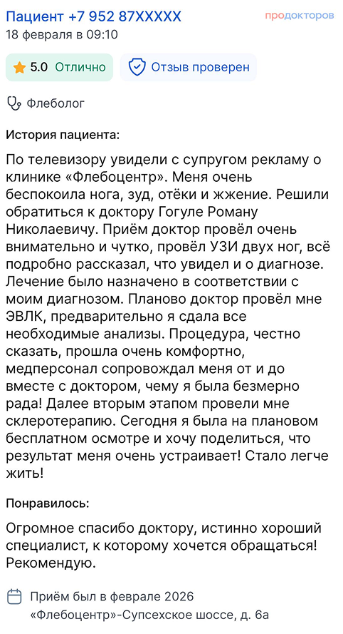 "Второе мнение" - первичный прием флеболога бесплатно*